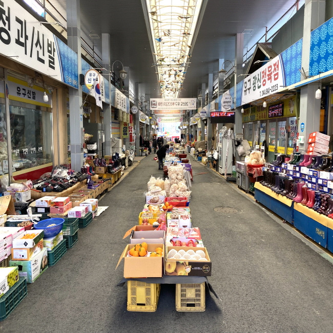 장터에는 농산물이 대부분을 차지하나